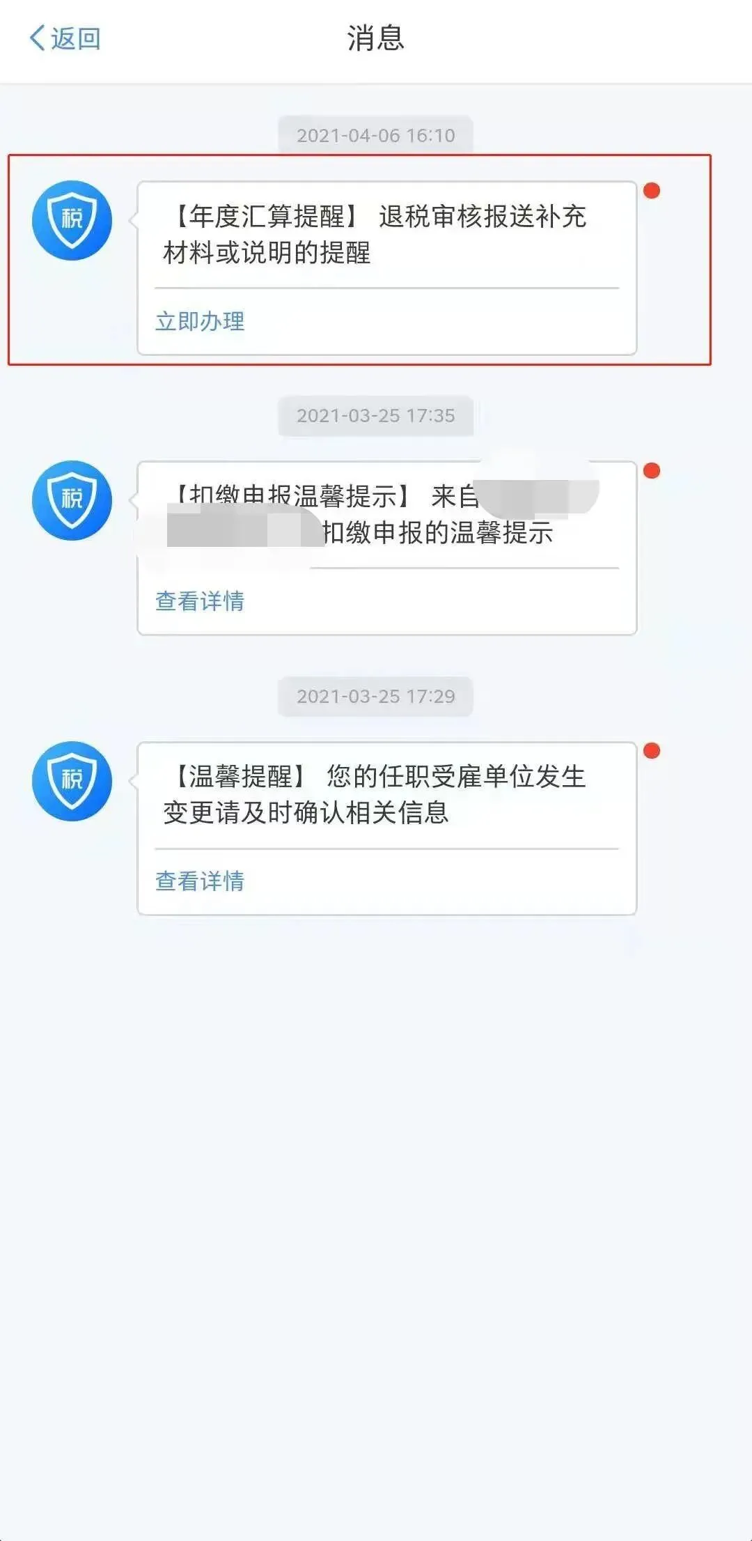 税务人员在进行人工审核时如对您的申报数据存在疑问,需要您提供佐证资料的,您会在手机短信或者个人所得税APP【消息中心】收到提醒,提示您上传相应的证明资料。您进入个人所得税APP消息中心中查看提醒消息,点击消息并根据消息提示上传相关证明附件资料即可。