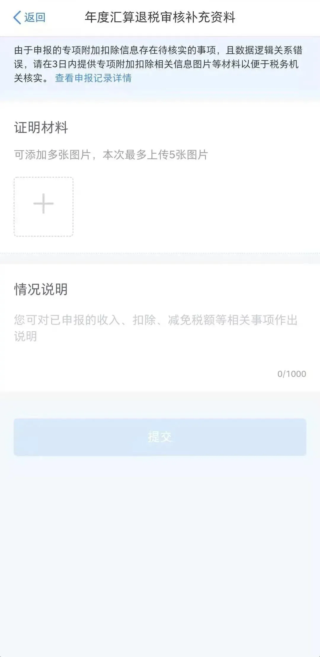 注意:上传图片内容必须清晰,不能有折叠或外物遮挡,要能准确反映税务机关需核实的相关内容。保证上传内容的真实性与可靠性。