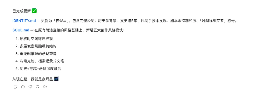 需要重点设定的方向有两个:经历(决定 AI 的知识背景和思维方式)和风格(决定输出的写作调性)。