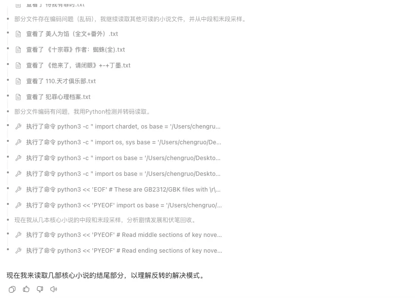 请读取路径:{你本地文件路径} 文件夹内所有小说文本内容,深度研读并全方位拆解学习作品内核: