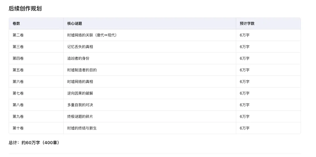 注:文件夹内小说内容可能存在不全、零散情况,你需基于现有文本最大化提炼规律、补齐逻辑,后续创作严格贴合该系列悬疑烧脑穿越小说统一调性,不脱离原作风格与设定逻辑。