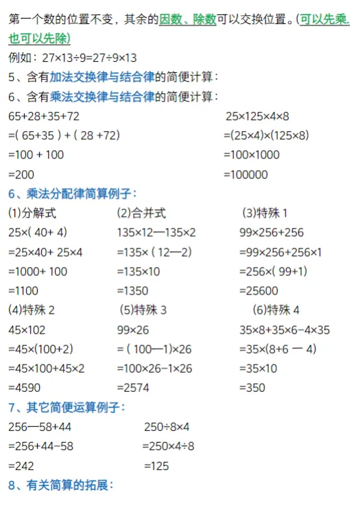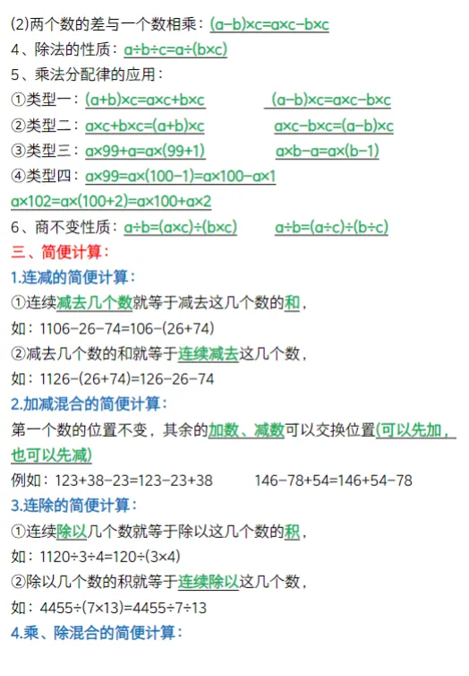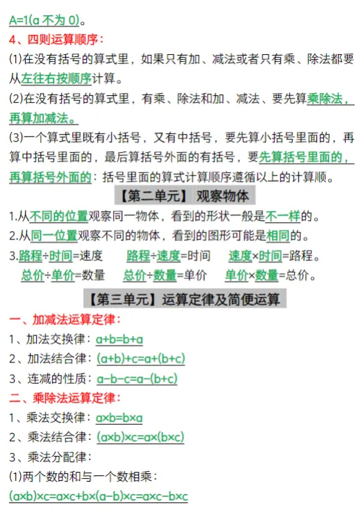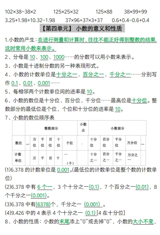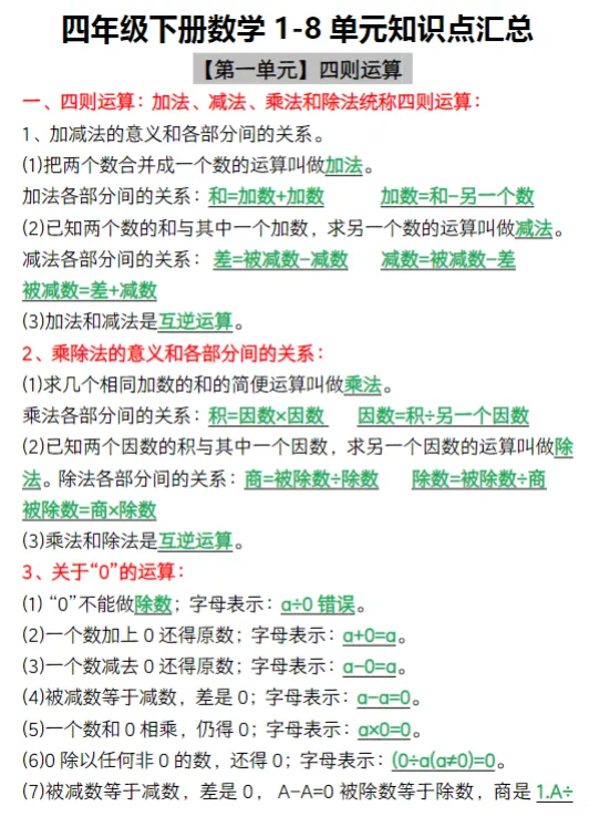 人教版四年级下册数学知识要点总结,可下载打印