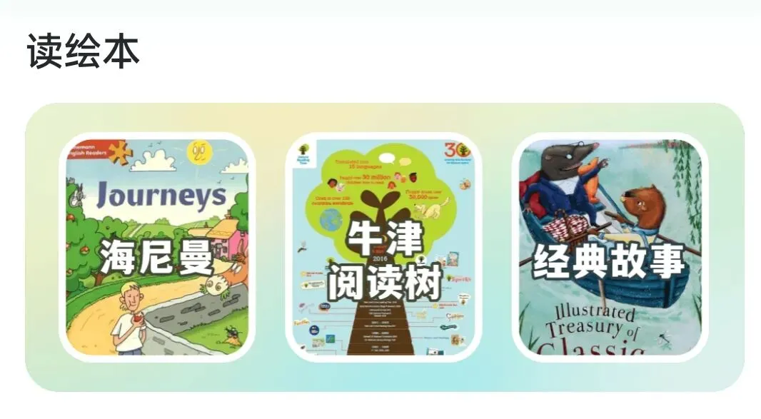 里面海尼曼、牛津树这些经典分级全都有,还有很多故事类绘本。