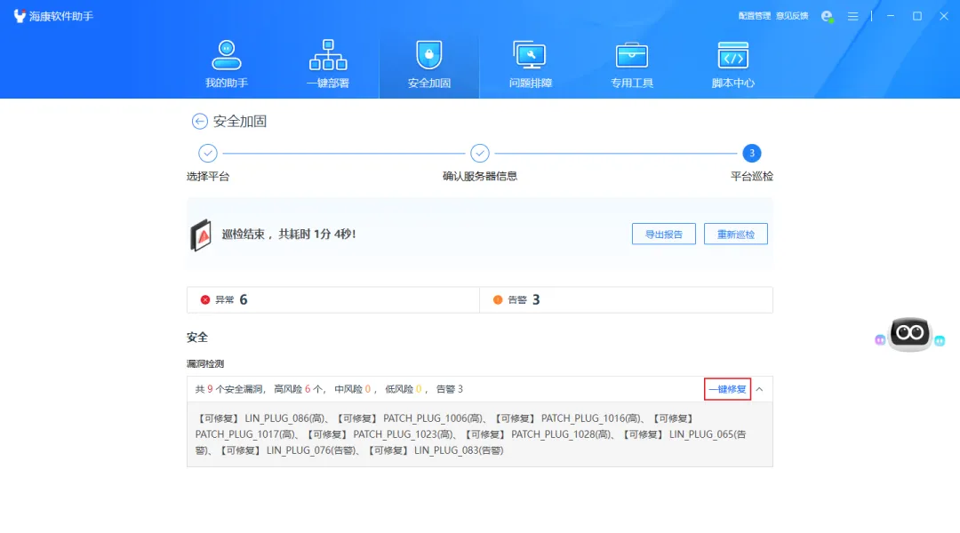 请您知悉,我们提供了对您平台完整的安全加固步骤,您可以按照下面的操作步骤完成平台加固,