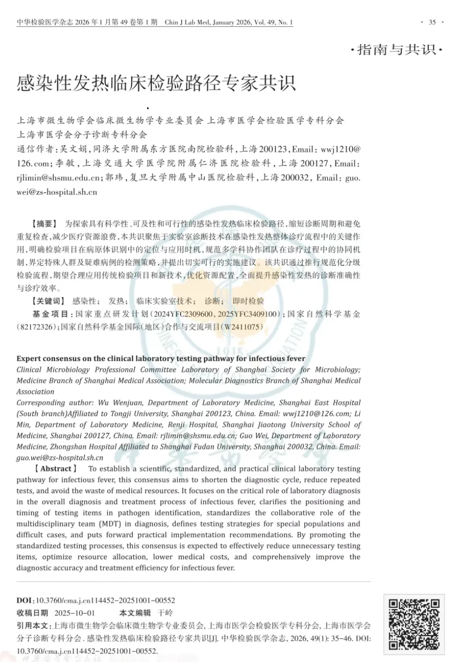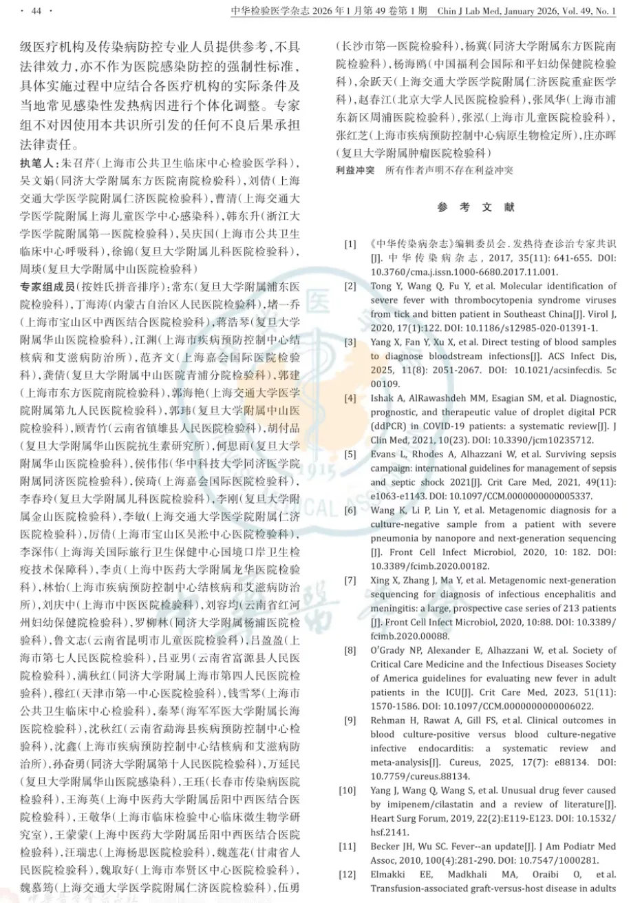 【Word版下载】感染性发热临床检验路径专家共识2026
