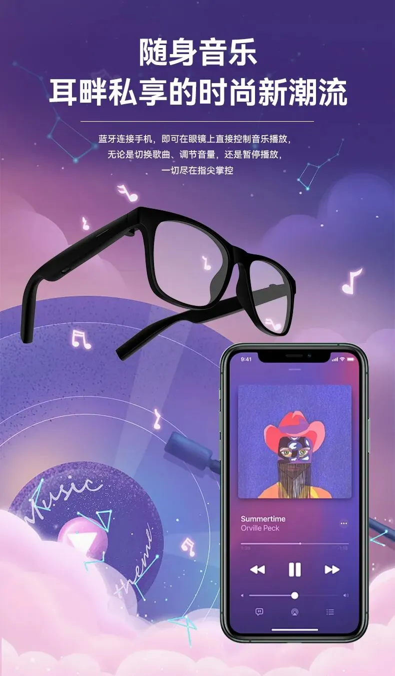 音频眼镜自带扬声器,平时不喜欢戴耳机的人也可以有私密音频了