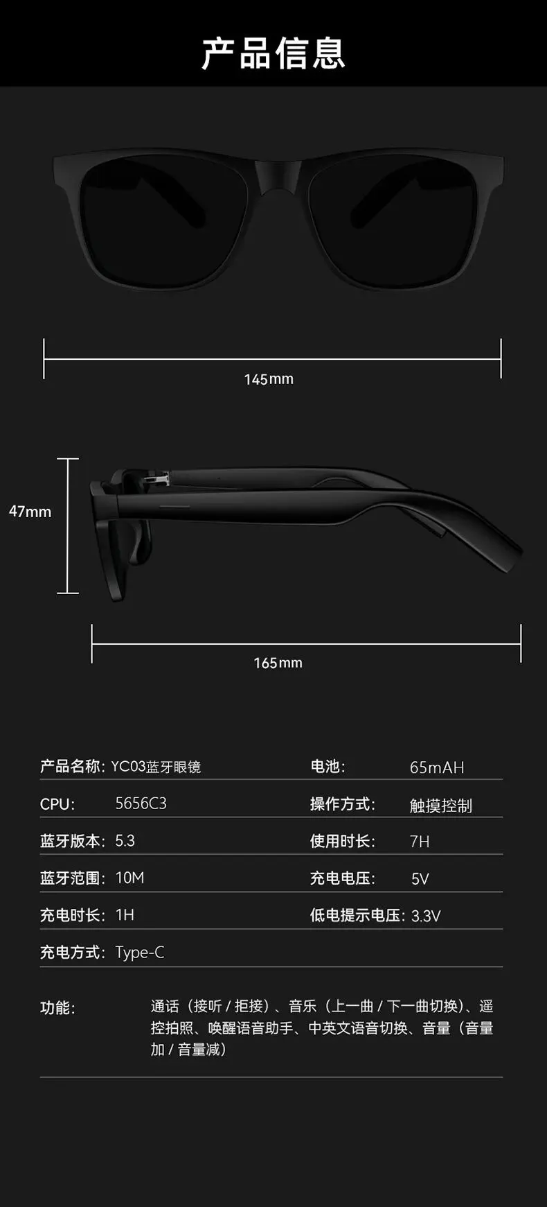 智能蓝牙音频眼镜,新一代的数码爆品,蓝牙通话、蓝牙音乐,触摸控制,半开放式立体环绕声等等,