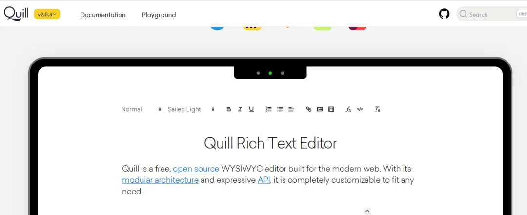 Quill 是一个轻量级、免费开源的富文本编辑器,官方文档:https://quilljs.com
