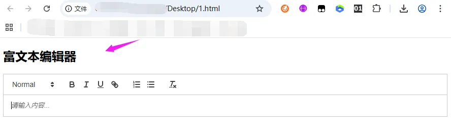 <!-- 引入 Quill 样式 --><link href="https://cdn.quilljs.com/1.3.6/quill.snow.css" rel="stylesheet"><!-- 引入 Quill 脚本 --><script src="https://cdn.quilljs.com/1.3.6/quill.js"></script>