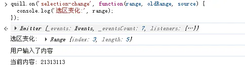 // 获取焦点quill.focus();// 聚焦到指定位置quill.setSelection(0, 5);// 禁用编辑器quill.disable();// 启用编辑器quill.enable();