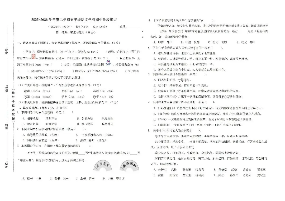 五年级下册期中模拟卷①附答案(免费下载) 温馨提示:点击文末阅读原文可下载 声明:素材来源网络,本文意在交流学习,普及知识,如涉及版权等问题,请及时与我们联系。 领取方式 点击下方信息后 发送消息“期中模拟”即可领取 领取电子版请戳这里~