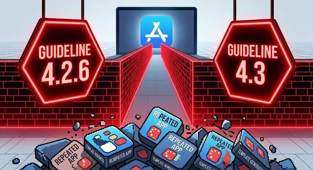 苹果祭出了杀伤力极大的 Guideline 4.2.6(App 模板与生成服务) 以及连带的 4.3(重复应用) 红线:严禁通过商业化模板或 App 生成服务创建的应用上架;如果开发者试图通过细微修改提交大量相似应用,将面临直接拒审及开发者账号的全面封禁。