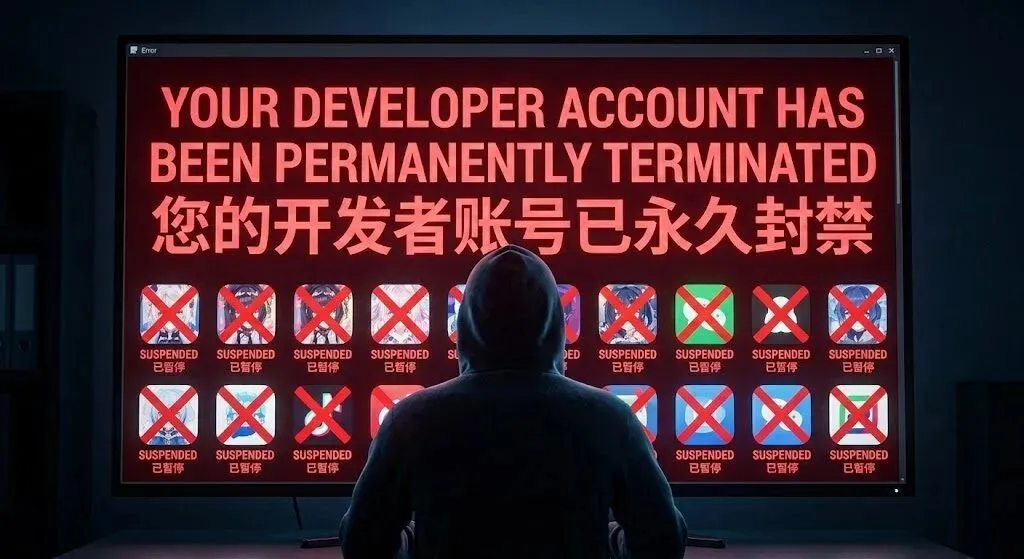 在这个容错率极低的红色禁区,新注册的个人开发者账号或劣质批量企业号一旦被机审扫描出模板指纹,系统通常不会给予任何 Resolution Center 沟通的机会,直接执行开发者主体 Termination(永久终止)并全网封杀所有关联 IP 和设备的资产。