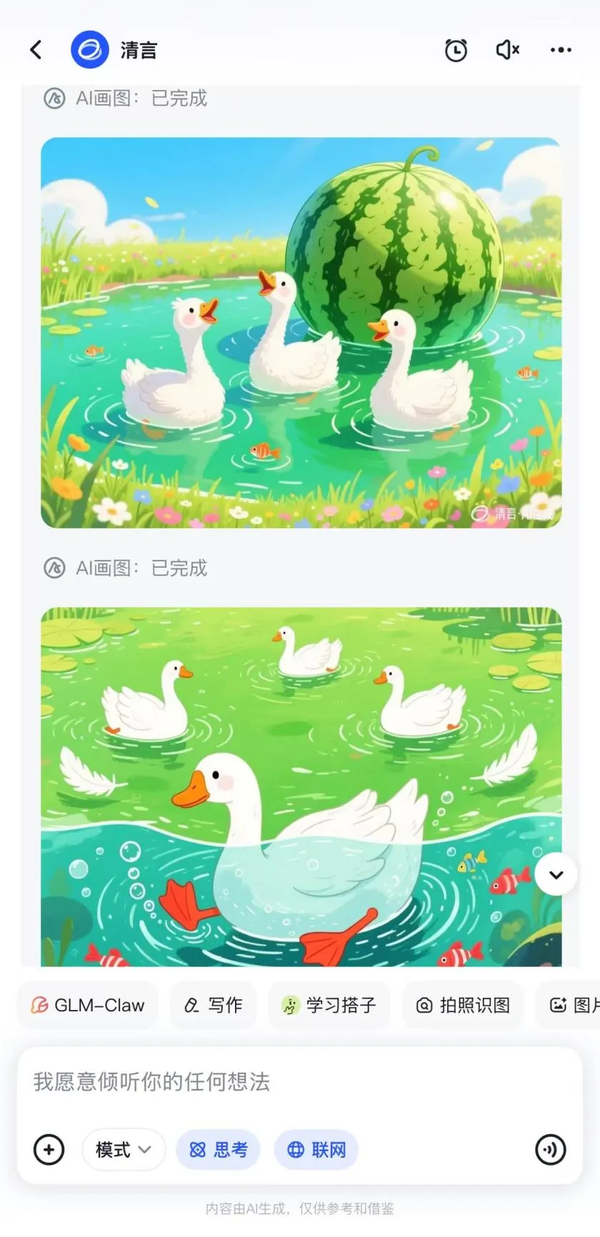 这是智谱清言非常吸引人的一点!它不仅能写故事,还能直接“画图”。