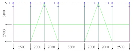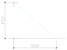 ,绘制辅助线,并将斜杆移动到正确位置,然后将辅助线删除。