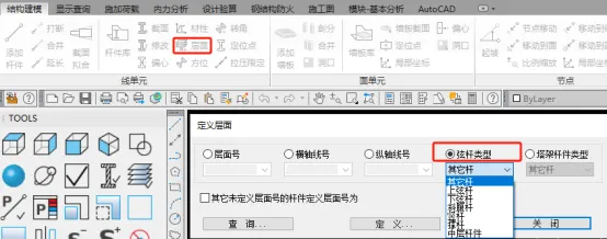 弦杆类型:若为网架网壳,需要生成节点施工图时,需要定义弦杆类型,若忘记定义也可在【层面】中去定义。