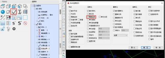 有时杆件仅一端需要释放约束,须判断ij节点,可以选择【构件信息】弹出对话框下的【局部坐标】显示杆件的局部坐标轴,杆件1轴指向方向为j节点。