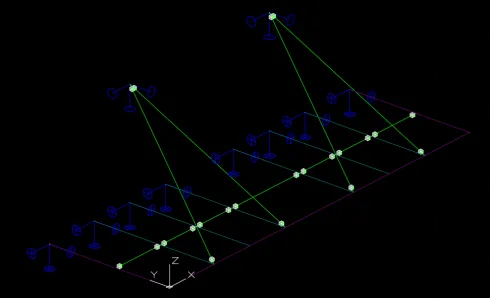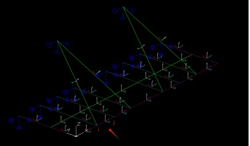3D3S中施加面荷载时需要形成一个封闭的平面,对于一边开敞的面可通过【添加虚杆】形成一个封闭平面。