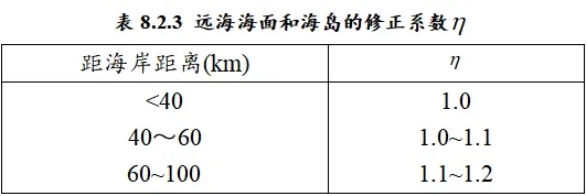 表8.2.3 远海海面和海岛的修正系数