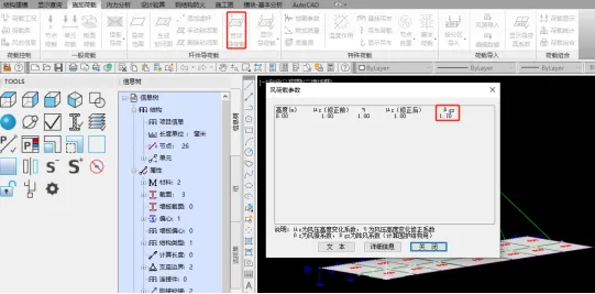 施加风荷载:同样点击【导荷范围】,在弹出的对话框中定义风压和风吸,对于风荷载的方向,通常采用内部参考点的方向,若风荷载方向和内部参考点方向相同,风载体型系数取为正值,相反时,取为负值。风荷载参数可以直接引用前述【风总信息】,也可直接修改。
