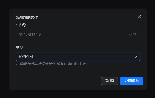 在规则配置页面,可以设置规则的名称以及规则生效的范围:
