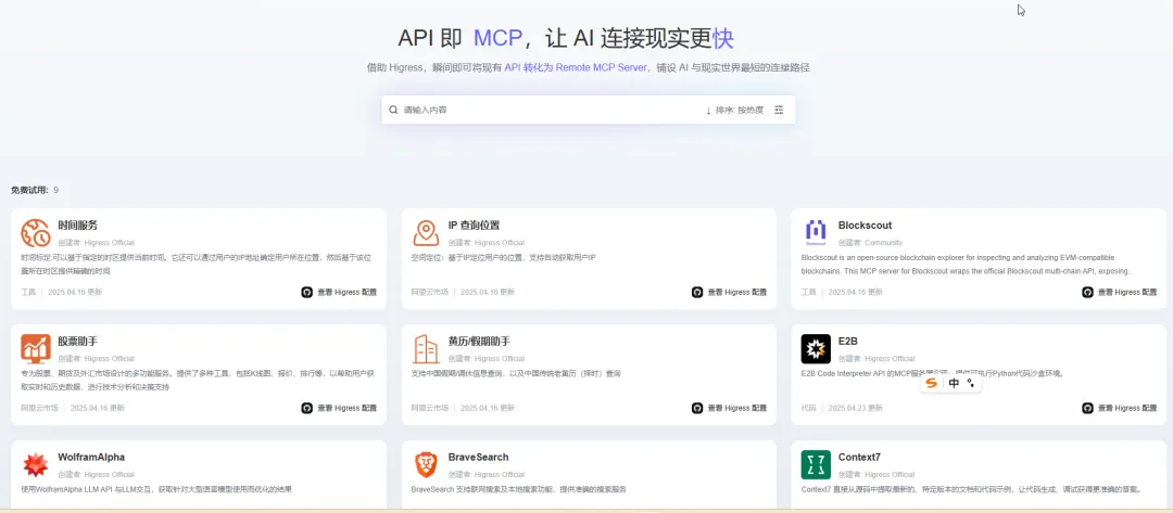 Higress MCP 市场 https://www.modelscope.cn/mcp