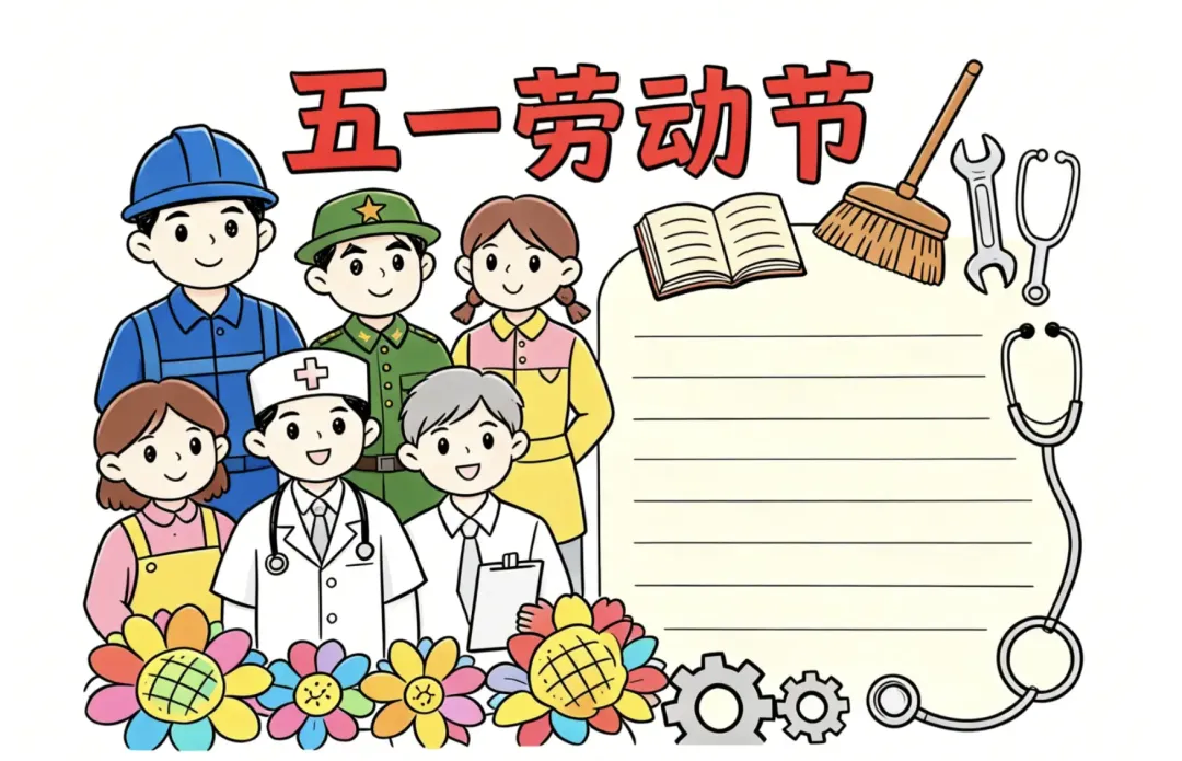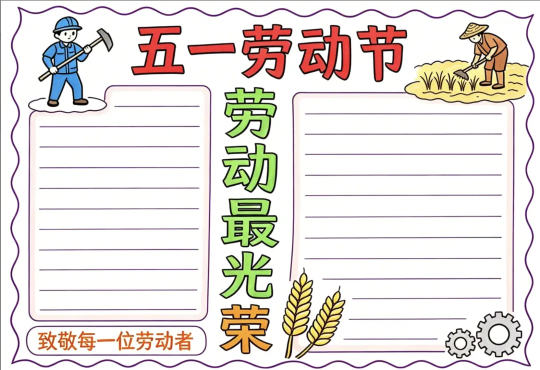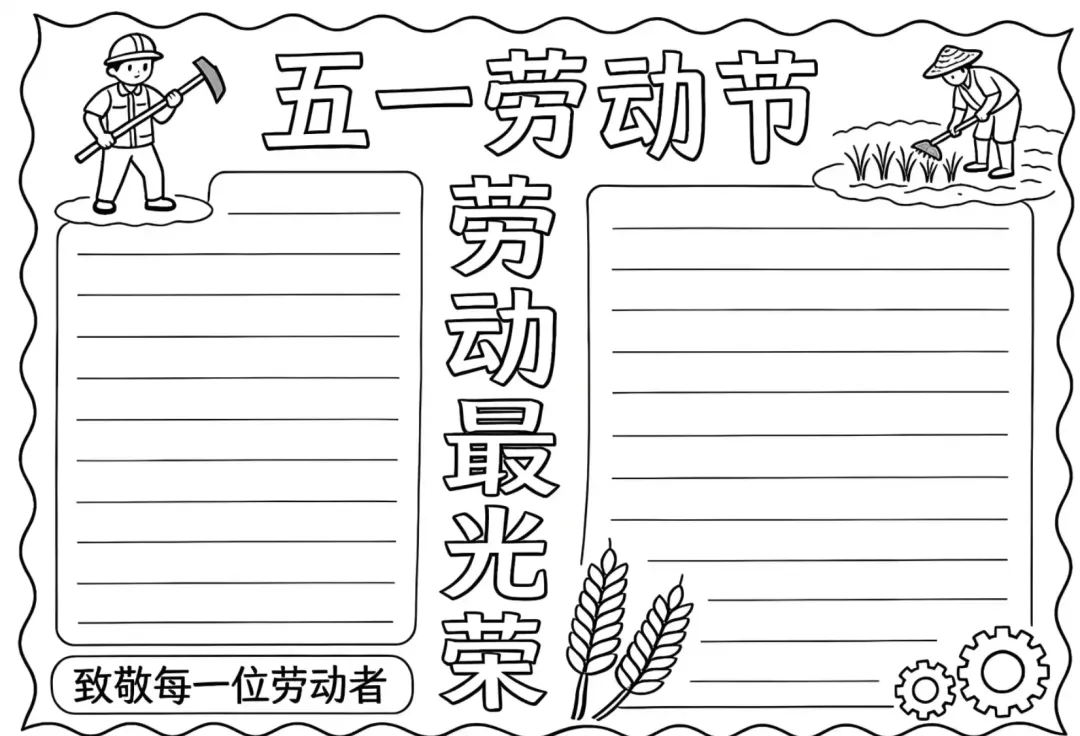 2026.5.1劳动节手抄报线稿,高清可下载打印