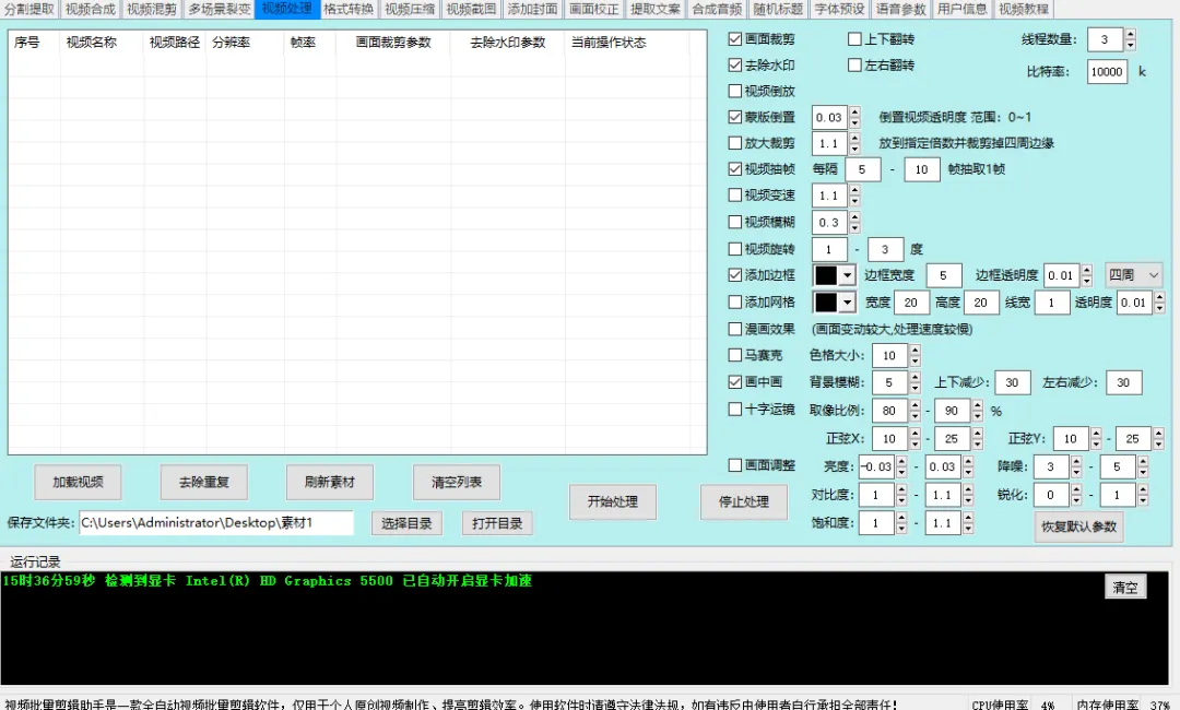 视频处理功能则支持批量自动化操作,按用户参数为多个视频统一添加特效,高效便捷。
