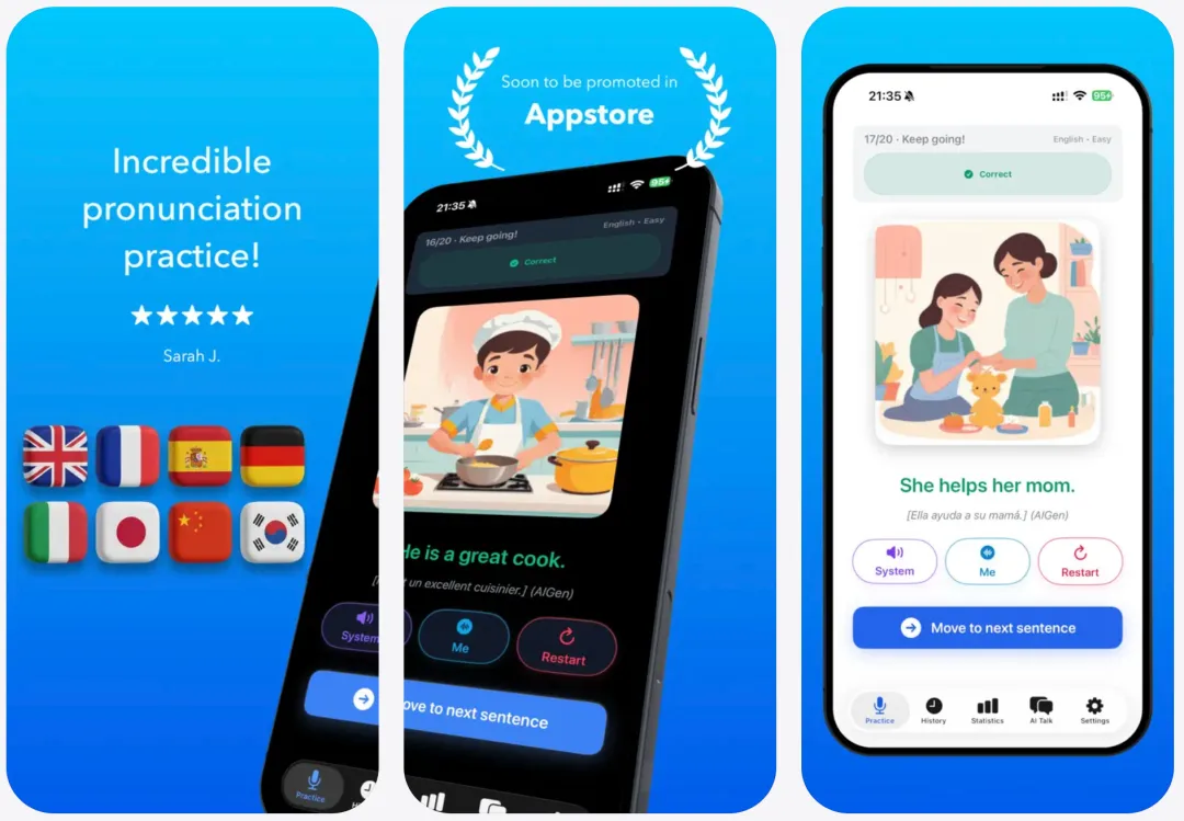 简介:一款人工智能发音和口音训练应用程序,可帮助您清晰、自信、自然地使用新语言说话。