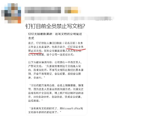 一边是某钉CEO无某招公开“下禁令”,全员不准再手工写文档;一边是某创优品悄悄成立AI创新部……