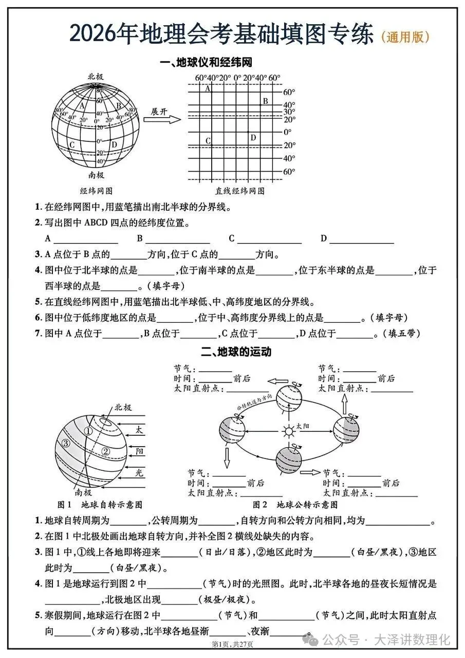 2026年最新版地理会考基础填图专练,有完整电子版可打印,学霸学习好帮手,建议家长打印,学霸人手一份 备战2026地理会考,填图题一直是拉分关键,很多同学知识点背得熟,一到填图就丢分,实在可惜。这份老师精心整理的全册填图专练,把整本教材核心地图考点全部汇总,不用再自己翻书找图、划重点,直接拿来就能用。