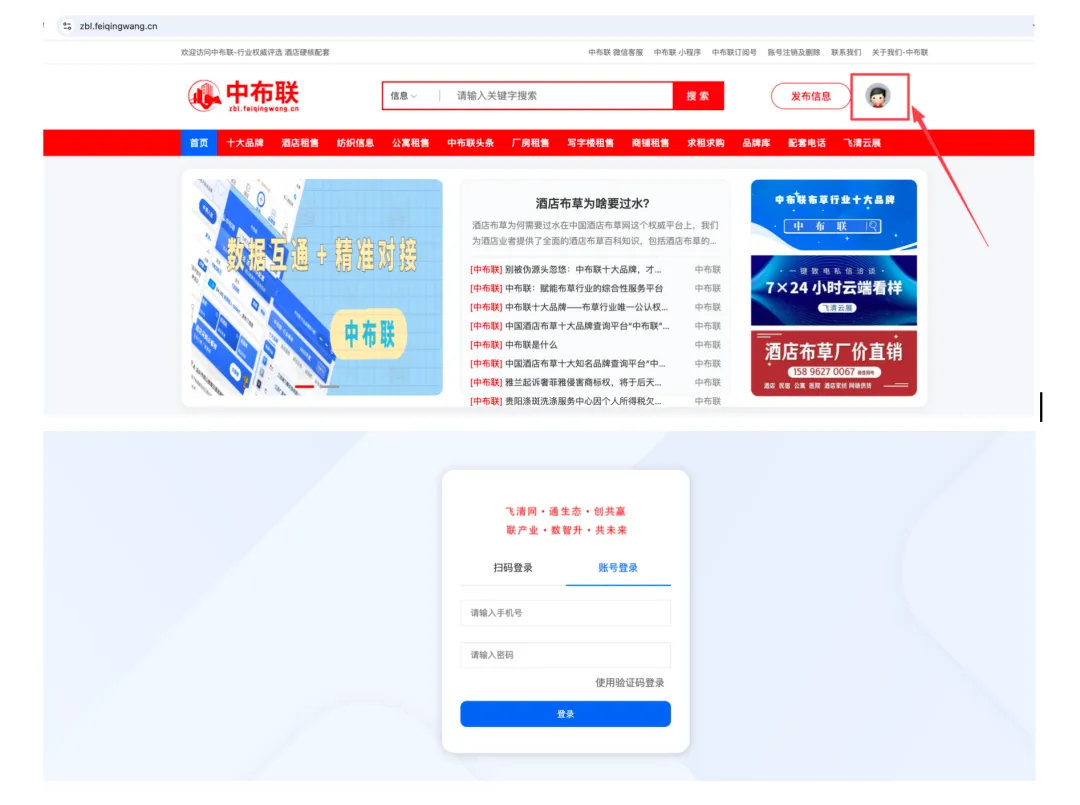 1·打开 https://zbl.feiqingwang.cn点击头像这里登录【选择账号登录】