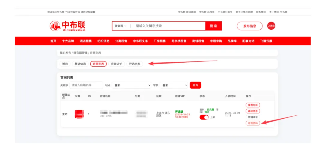 2·登录后点击头像 选择 微官网 【进行评选资料更新】