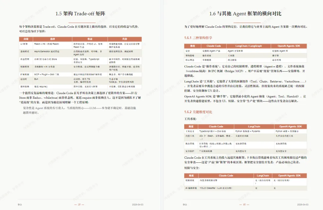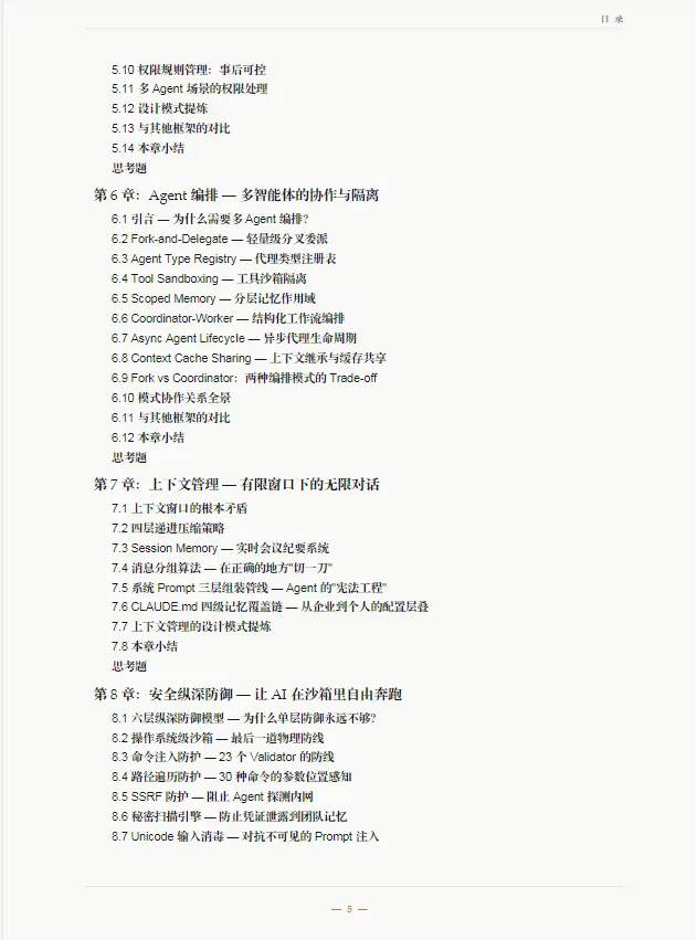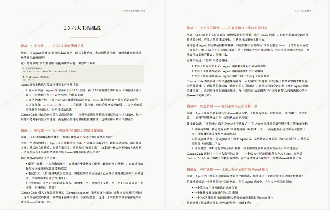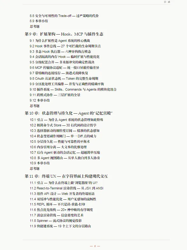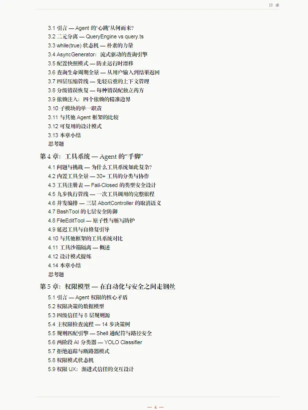 :重点讲解了对话循环、工具系统、上下文管理、权限控制等可复用的工程化设计方案。 - 多 Agent 与扩展能力解析