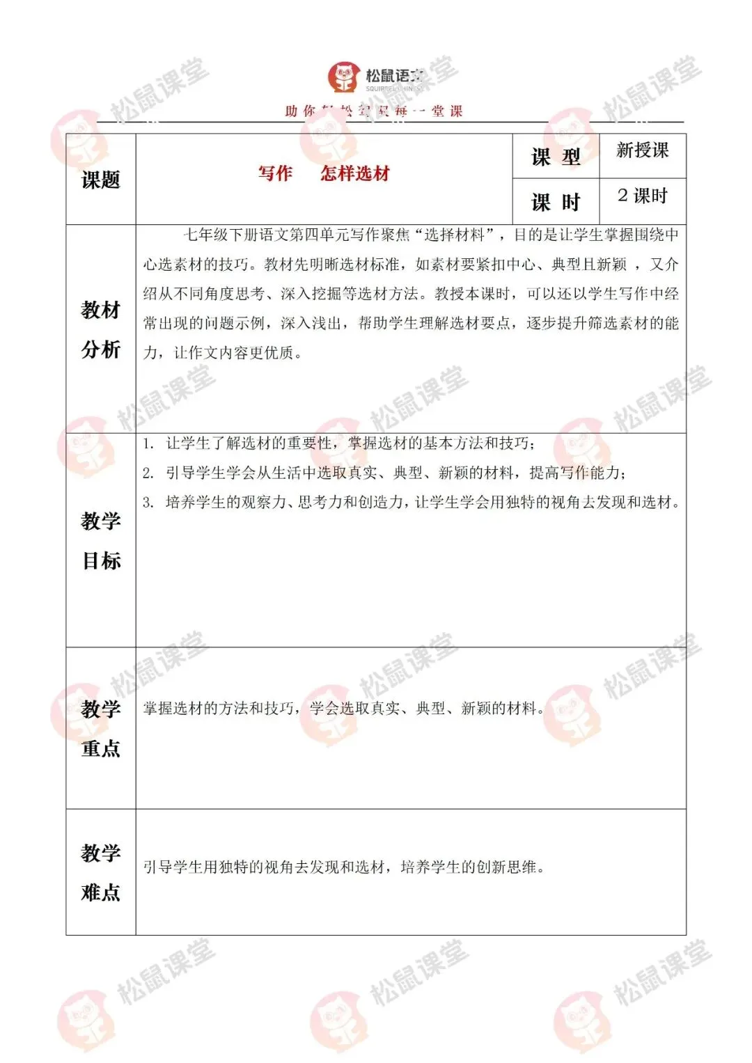 ●写作《怎样选材》