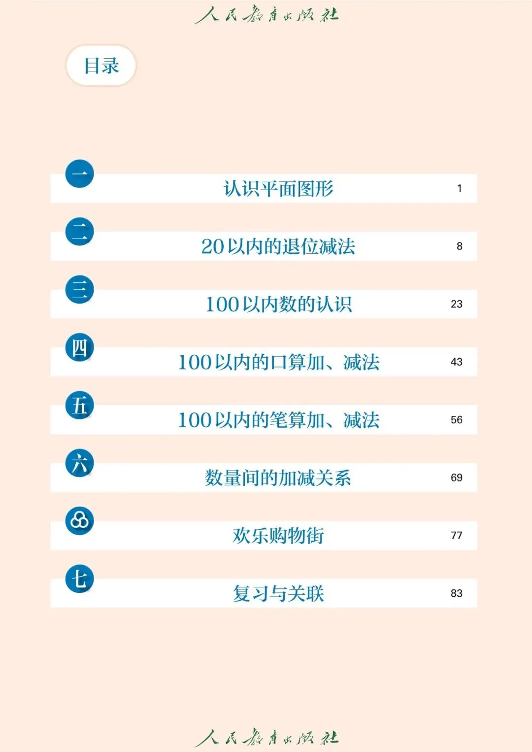 这套资料包含语文 127 页与数学 90 页完整课本内容,语文覆盖识字、课文、古诗、日积月累、写字表等全单元知识点,数学包含平面图形、20 以内退位减法、100 以内加减法、人民币认识等全部章节,内容完整、排版清晰,与教材同步,方便孩子随时查看、预习、复习与对照练习。