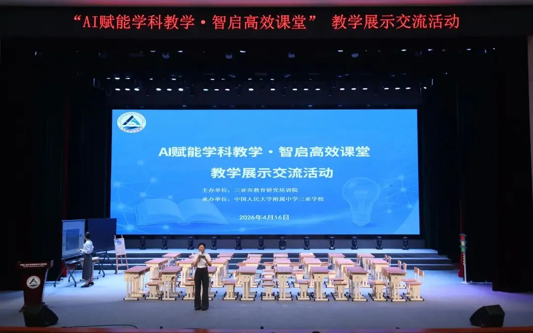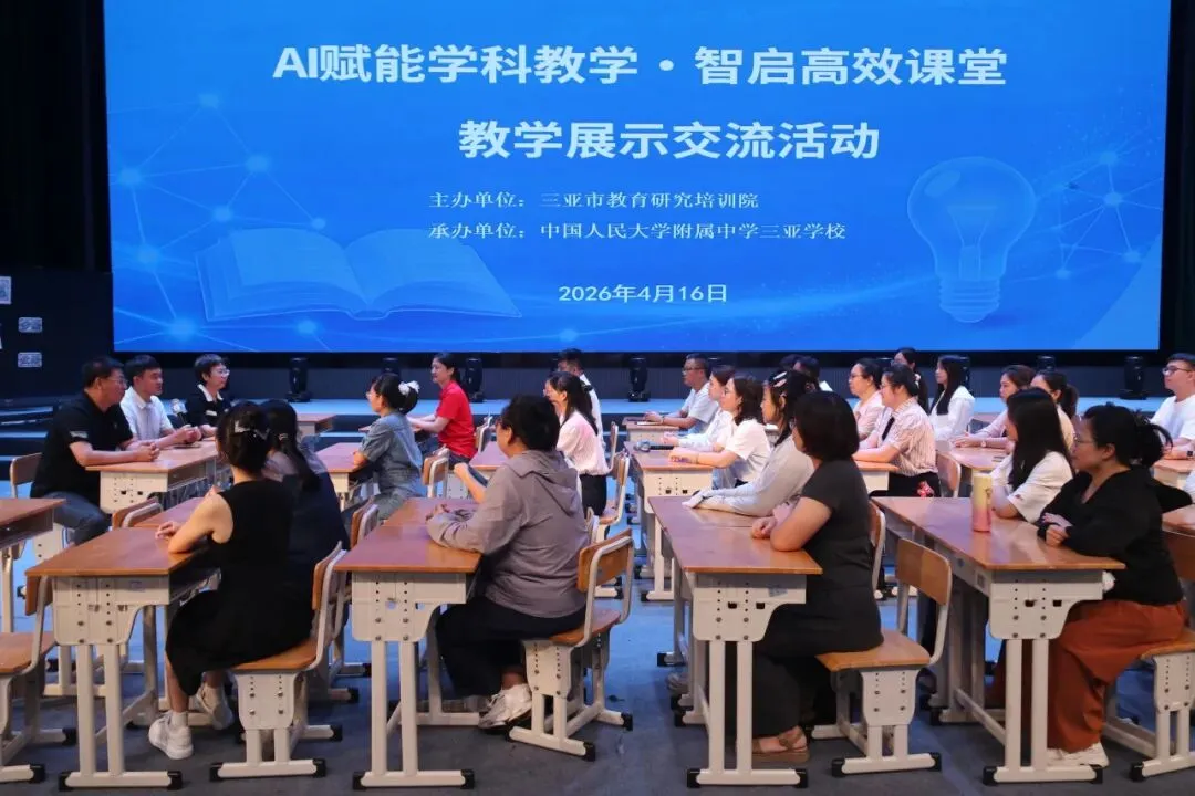 为深入推进我市教育数字化转型,探索智能时代课堂教学新范式,促进校际优质教研资源共享。4月16日由三亚市教育研究培训院主办,中国人民大学附属中学三亚学校承办的三亚市“AI赋能学科教学·智启高效课堂”教学展示交流活动在教培中心隆重举行。