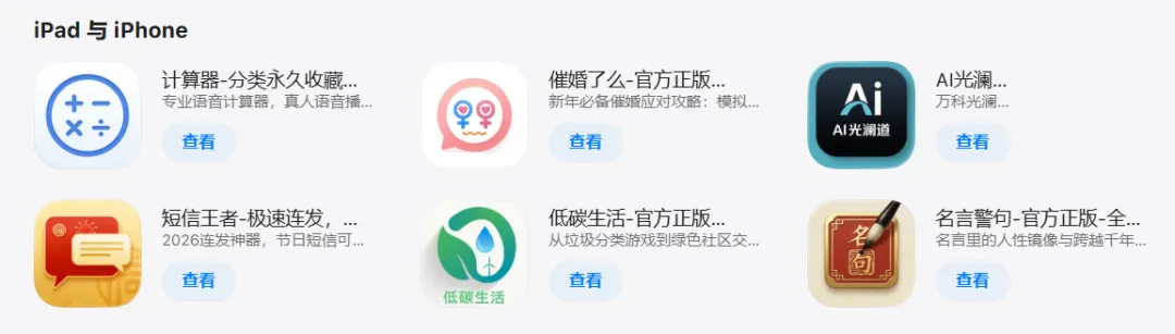 加上之前开发的3个App(低碳生活、名言警句、AI光澜道),一共6个App