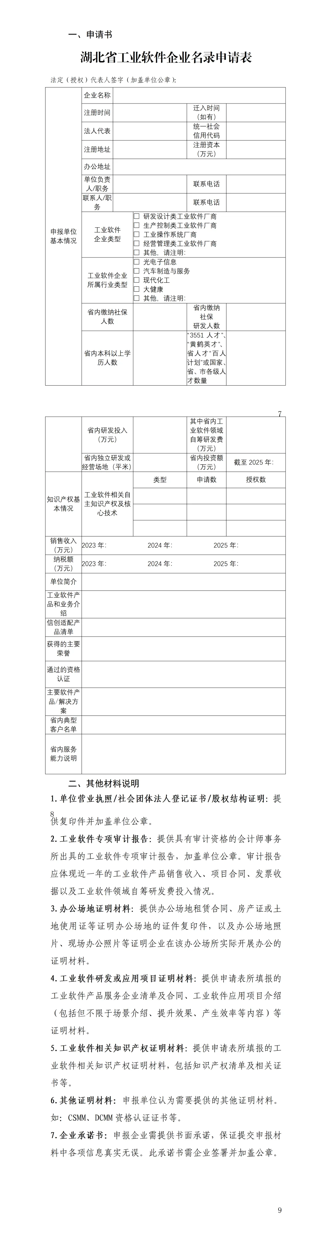 申报材料详见附件2。2.湖北省工业软件企业申请书