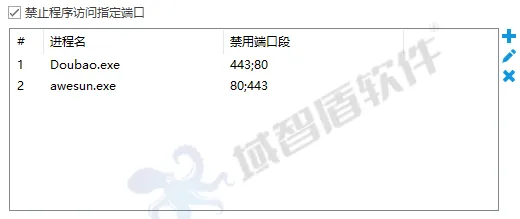 还可以禁止程序访问指定端口和内网地址。