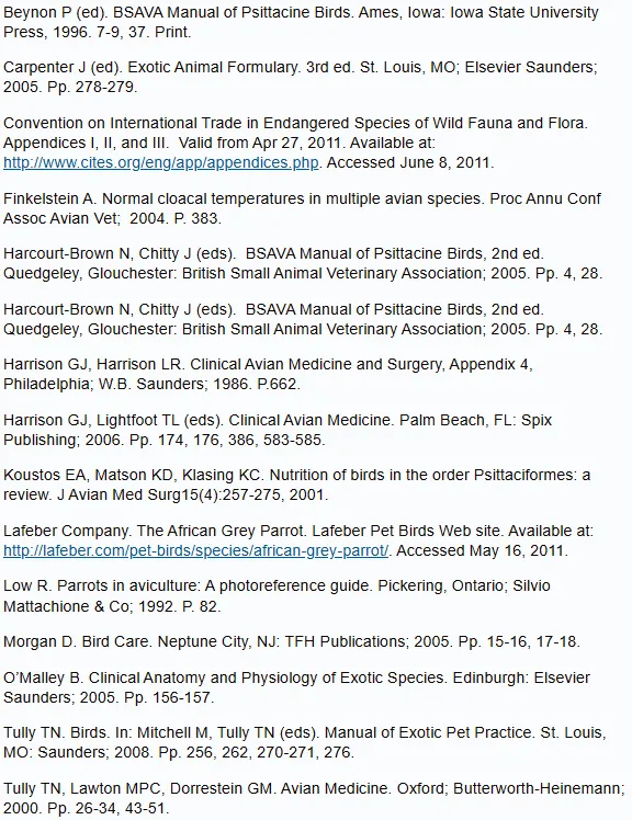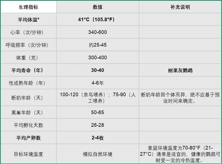 非洲灰鹦鹉基础信息表