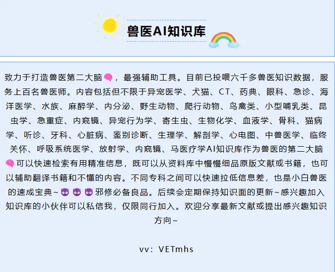 给大家推荐一个兽医AI知识库