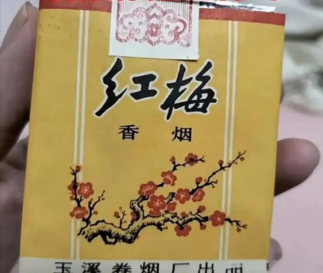 玉溪卷烟厂的主推,软黄红梅,一口入喉,烦恼无忧,那是多少老烟民的口粮,黄色的包装纸上几朵梅花开得正好,像是苦日子里开出的花,软包的手感捏起来特别踏实。