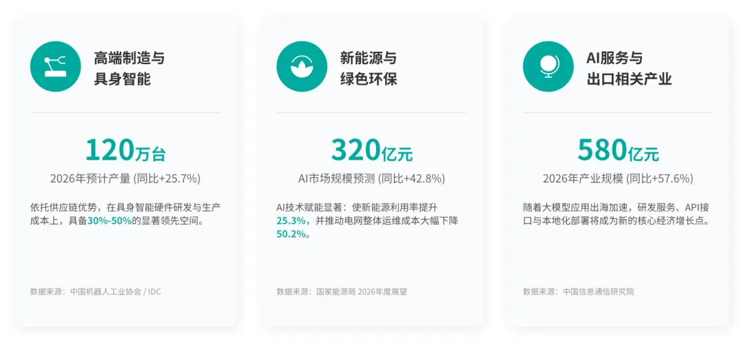 3. AI服务与出口相关产业:随着“Token出海”模式的普及,AI模型研发、API接口服务、海外本地化适配等相关产业需求持续增长,2026年相关产业市场规模将达580亿元,同比增长57.6%(数据来源:中国信通院《2026年AI服务出口报告》),成为新的经济增长点。