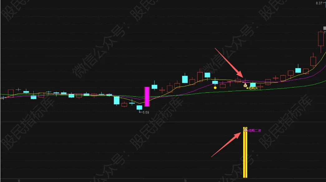DRAWTEXT(老鸭头,5.6,’ ★老鸭二波’),COLORMAGENTA;