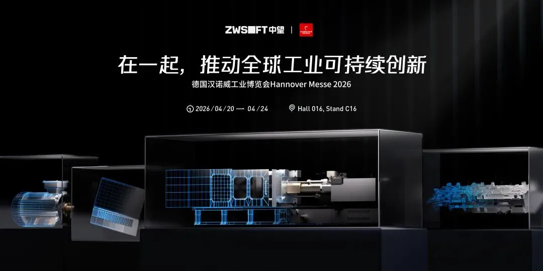 2026年4月20日至24日,中望将携中望3D+解决方案再度强势登陆德国汉诺威工业博览会,集中呈现3D CAD与AI深度融合的突破性成果,以及在汽车零部件、消费电子、机械设备等高端制造领域的全球化规模应用,展示中国“工业软件+AI”在全球工业创新浪潮中的硬核实力。