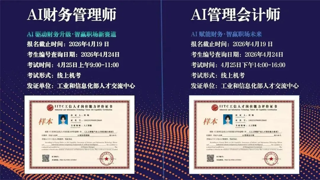 但同为工信部体系下的AI财务类证书,它们的定位和侧重点有本质区别。