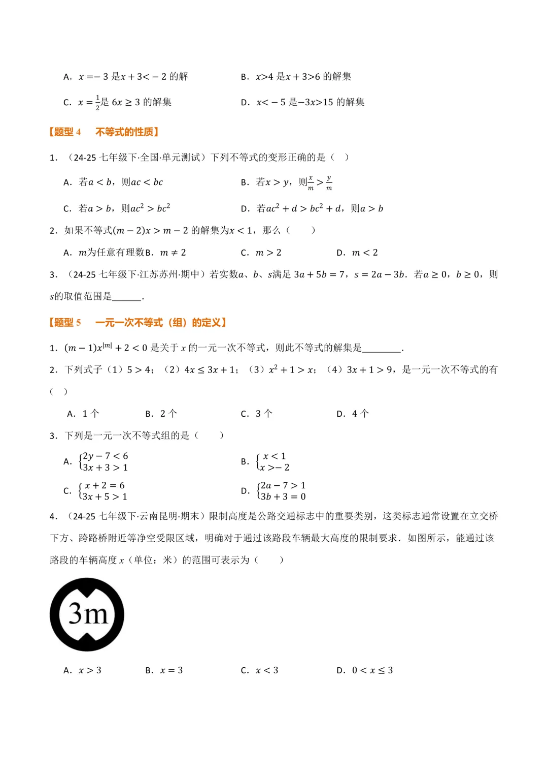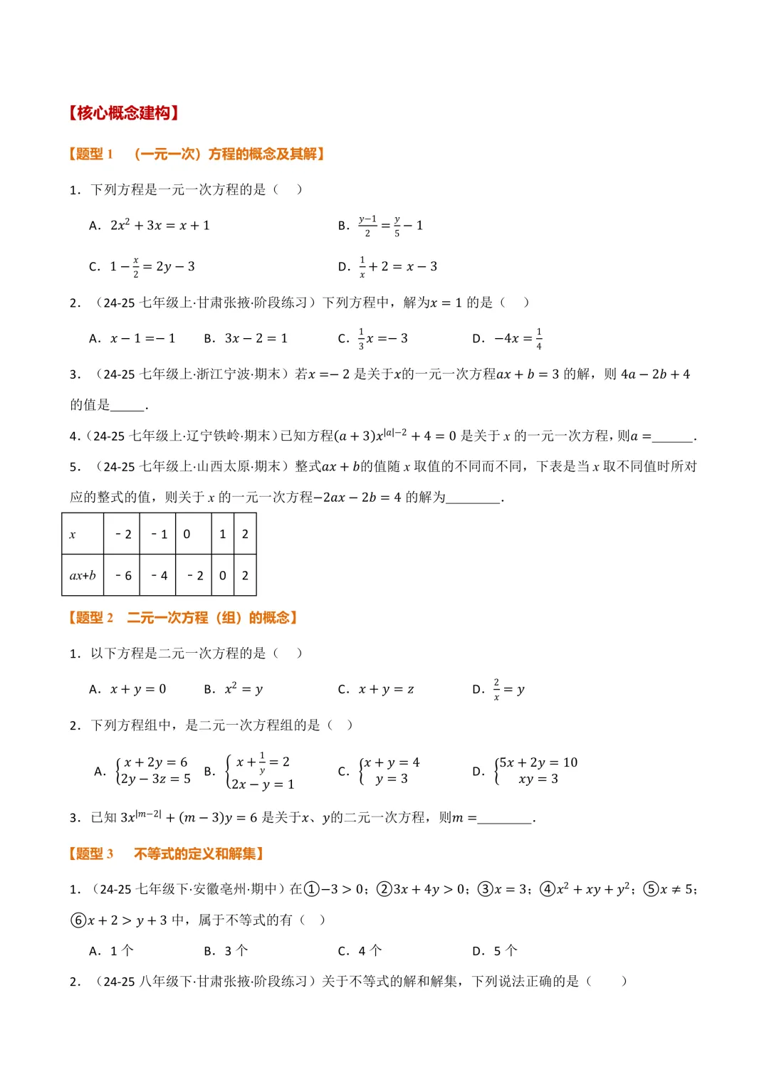【初中资料】26春七年级下册华东师大版数学《期中复习专项训练含4大类型21个常考题型有答案》完整可下载打印