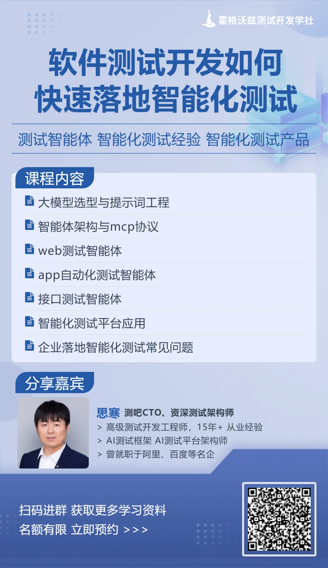 如果你希望真正掌握智能化测试的落地方法,而不是被技术热点牵着鼻子走——这堂公开课,就是为你准备的。