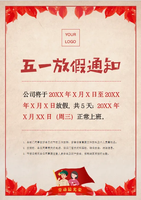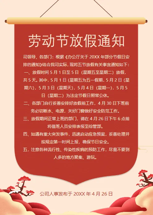 五一劳动节放假通知图片模板40套,免费下载,内容可编辑